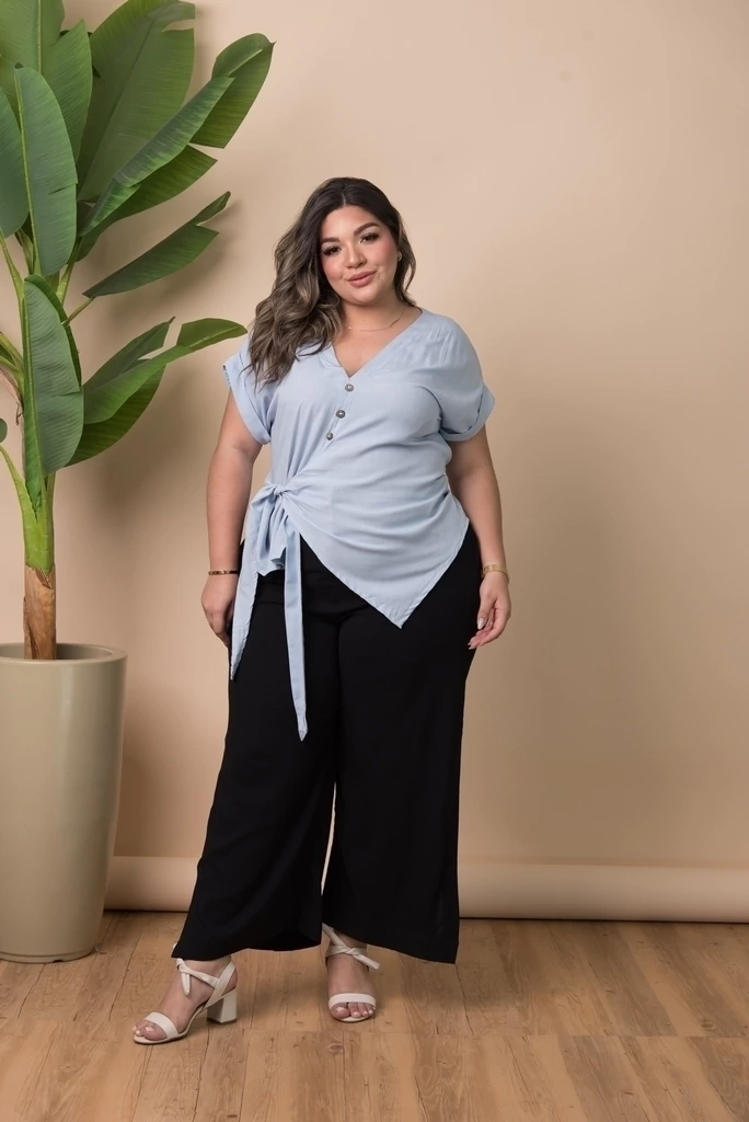 A Blusa Melik é perfeita para quem busca elegância e conforto em uma única peça. Com decote em V que valoriza o colo, apresenta botões frontais que facilitam o vestir. As mangas curtas com dobra conferem um toque moderno, enquanto a faixa para amarração na barra permite ajustar a peça ao corpo, realçando a silhueta. Ideal para compor looks versáteis e cheios de estilo.