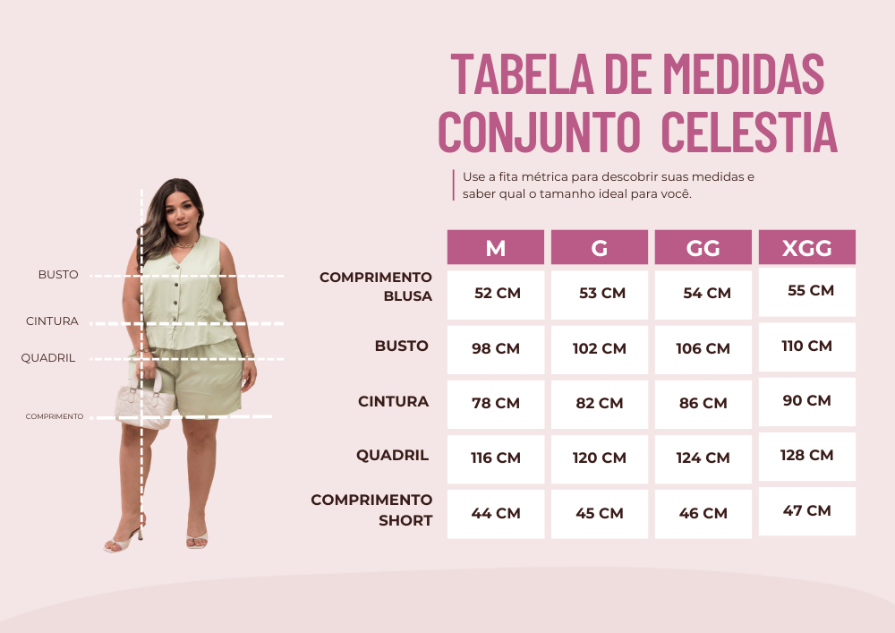 O Conjunto Celestia é perfeito para quem busca conforto e estilo em um visual leve e moderno. Composto por uma blusa sem mangas, que apresenta decote em V, botões frontais e um delicado babado na barra, traz feminilidade ao look. O short de modelagem solta conta com cintura elástica, garantindo ajuste perfeito e liberdade de movimento. Ideal para o dia a dia com toque de elegância.
